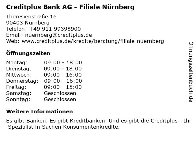 Creditplus bank nürnberg theresienstraße 16 90403 nürnberg telefon: